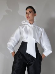 Step into a fresh, modern look with this chic shirt, featuring a delicate front bow for a touch of elegance. Perfect for making a statement with a modern edge.